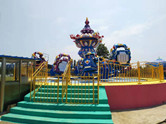 旋转飞椅游乐设备整体色彩鲜艳亮丽,同时拥有占地面积小、运行安全、耐腐蚀等特点,在市场上深受欢迎